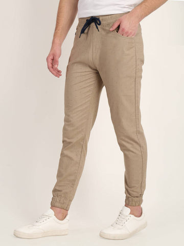 Men Dobby Joggers have elasticated & drawstring waistband with belt loops, 4 pockets (2 side pockets 1 mini & 1 back pockets). It is made of pure cotton fabric and has texture fabric pattern.