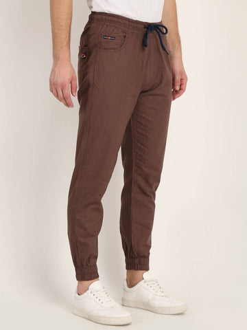 Men Dobby Joggers have elasticated & drawstring waistband with belt loops, 4 pockets (2 side pockets 1 mini & 1 back pockets). It is made of pure cotton fabric and has texture fabric pattern.