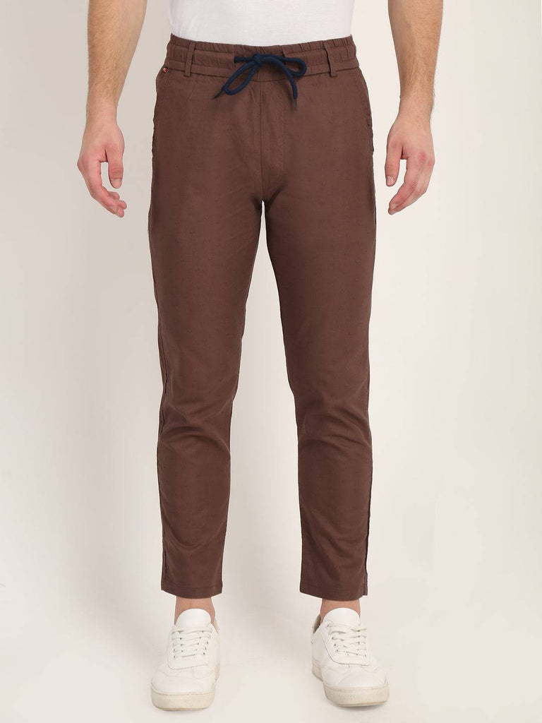 Men Dobby Lower Pant have elasticated & drawstring waistband with belt loops, 2 side & 1 back pockets. It is made of pure cotton fabric and has texture pattern.