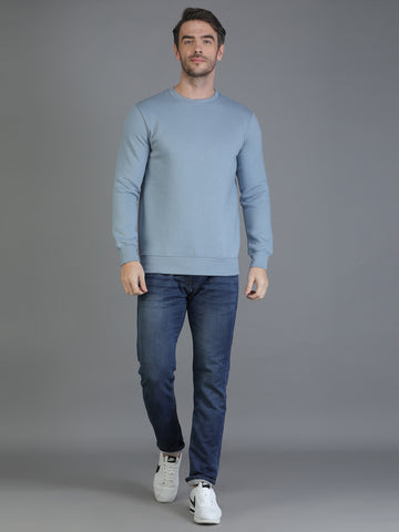 Colvyn Harris Cotton Fleece Crew Neck Dust Blue Sweatshirt for Men