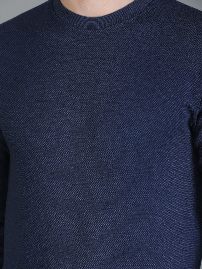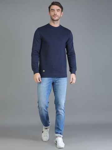 Colvyn Harris Cotton Fleece Crew Neck Navy Blue Sweatshirt for Men