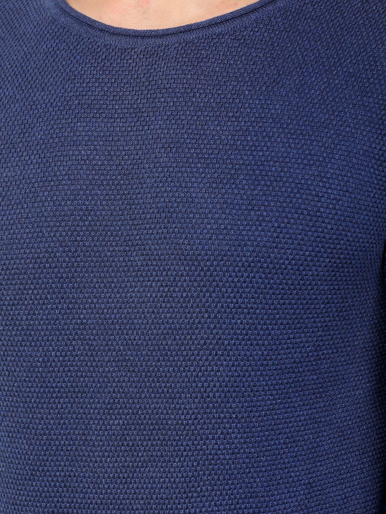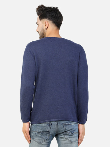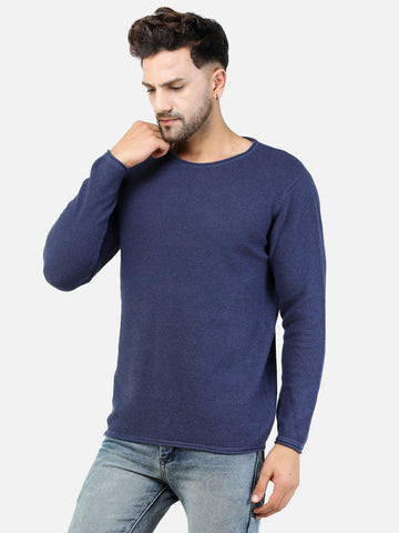 Colvyn Harris Men's Cotton Lycra Regular Fit Blue Sweatshirt with Rolling Neck