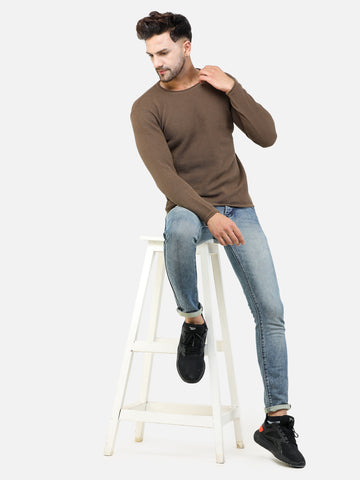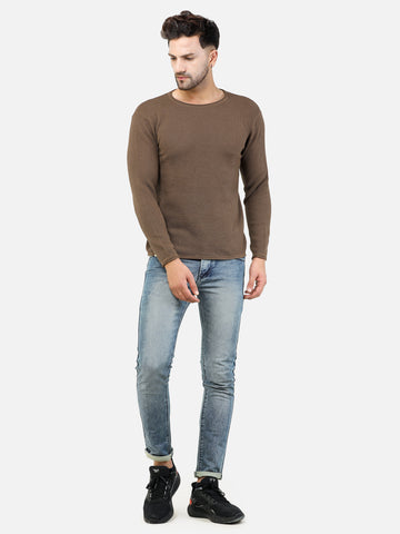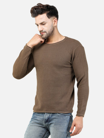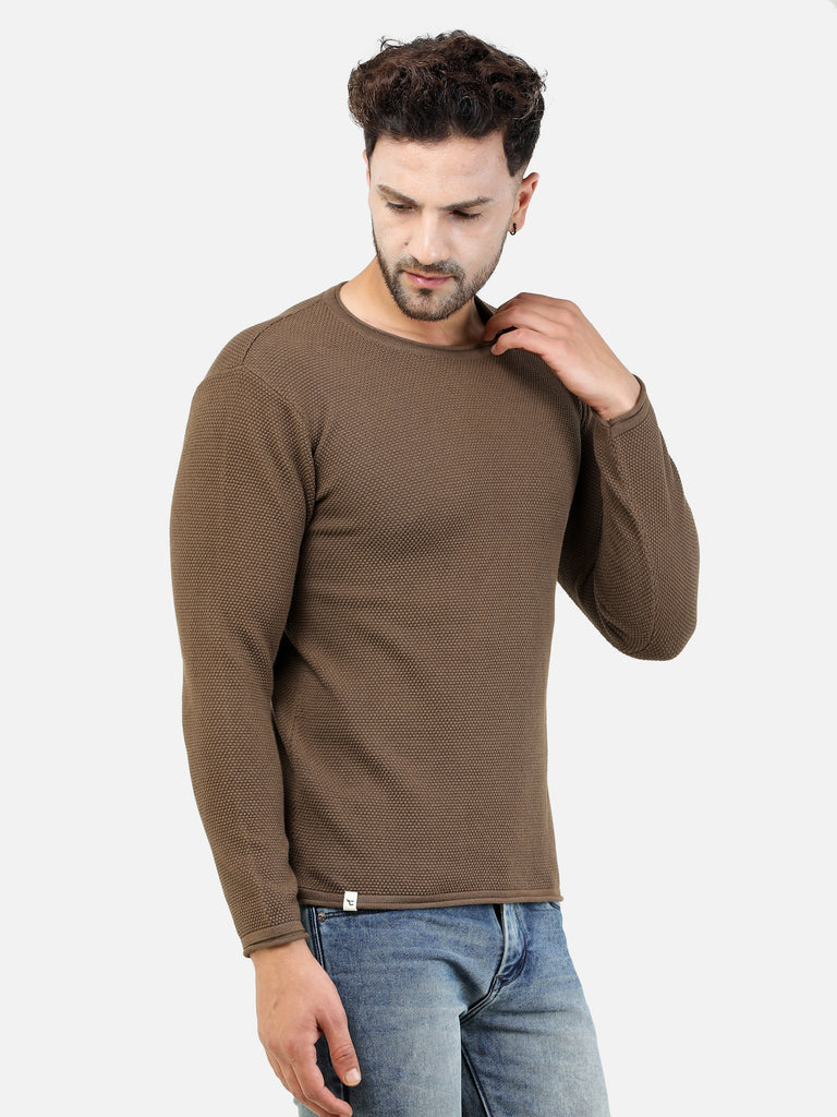 Colvyn Harris Men's Cotton Lycra Regular Fit Brown Sweatshirt with Rolling Neck