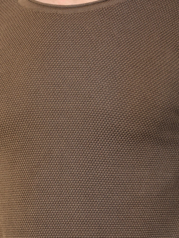 Men's Half Sleeves Round Neck Slim Fit Olive T-shirt