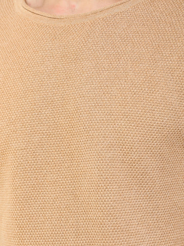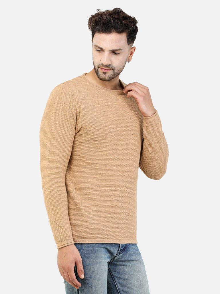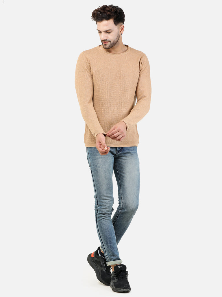 Colvyn Harris Men's Cotton Lycra Regular Fit Camel Sweatshirt with Rolling Neck
