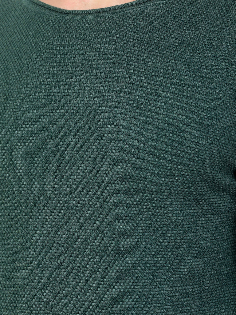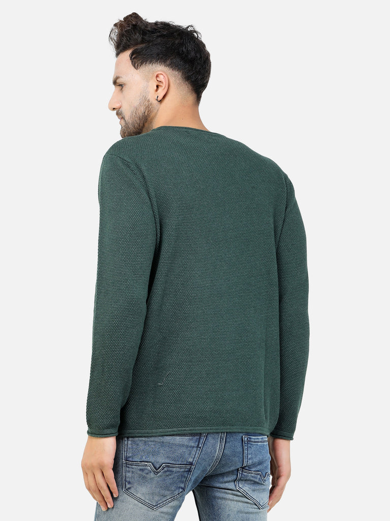 Colvyn Harris Men's Cotton Lycra Regular Fit Green Sweatshirt with Rolling Neck