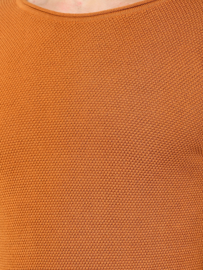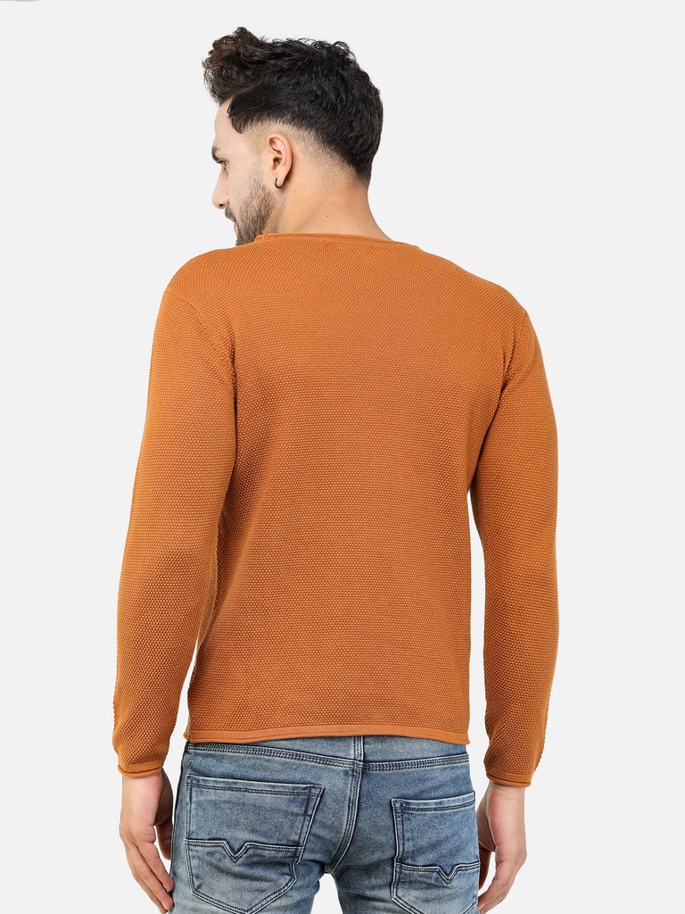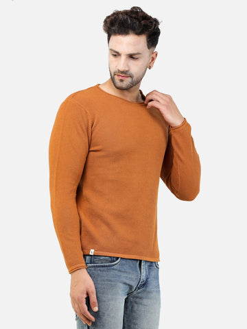 Colvyn Harris Men's Cotton Lycra Regular Fit Rust Sweatshirt with Rolling Neck