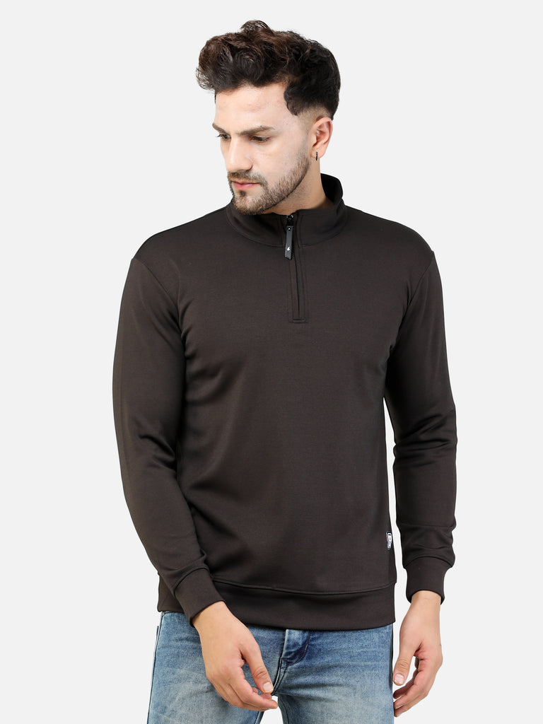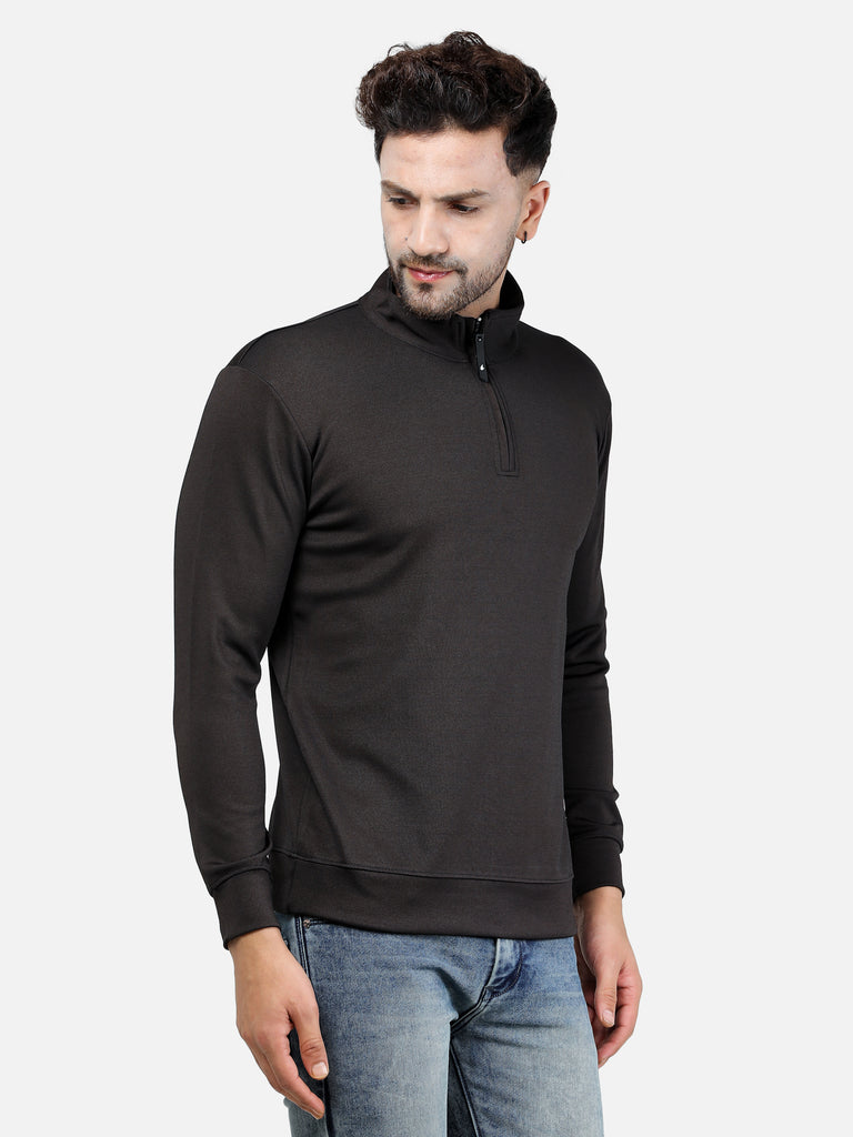 Colvyn Harris Men's Lycra Ponte Regular Fit Black Sweatshirt with T-Neck
