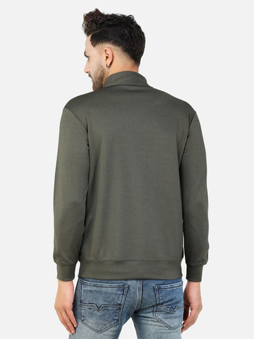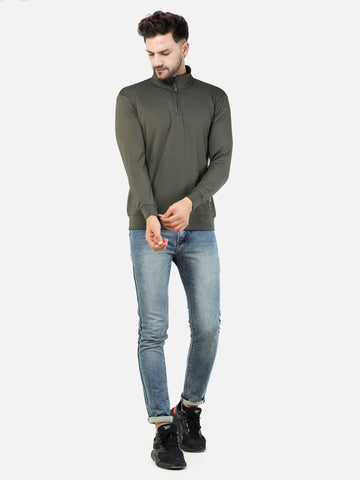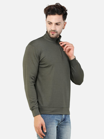 Colvyn Harris Men's Lycra Ponte Regular Fit Dark Green Sweatshirt with T-Neck