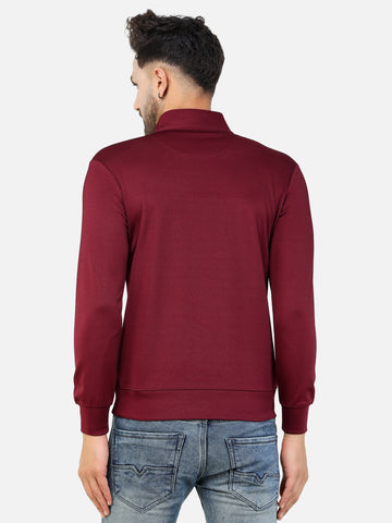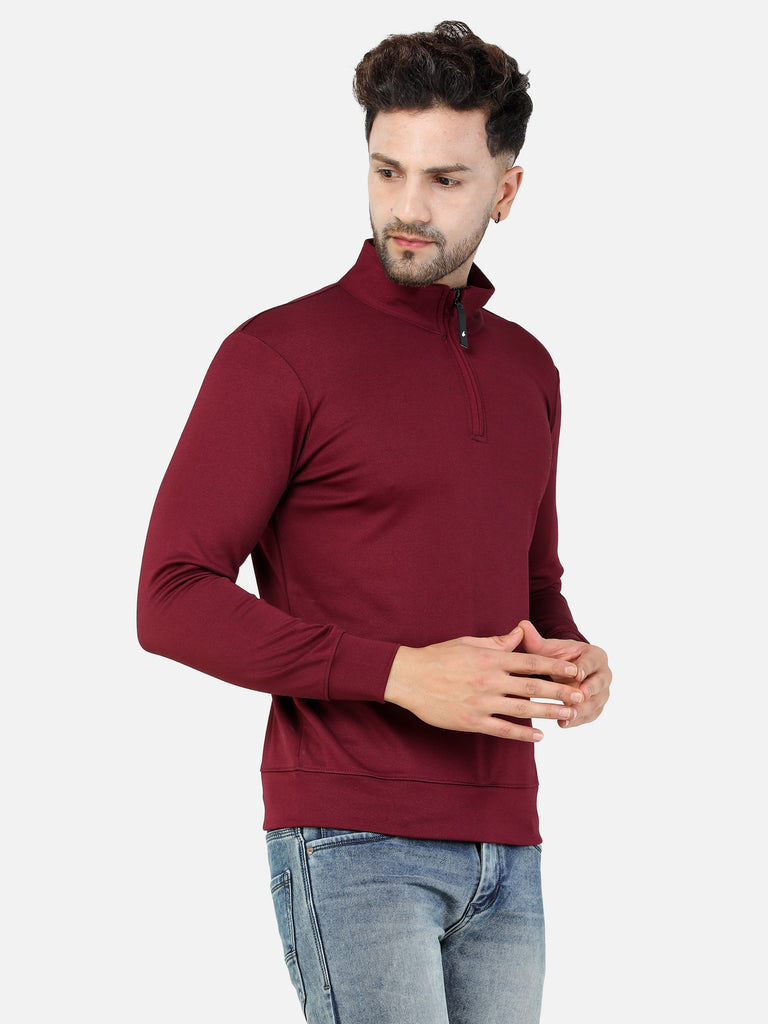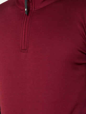 Colvyn Harris Men's Lycra Ponte Regular Fit Wine Sweatshirt with T-Neck