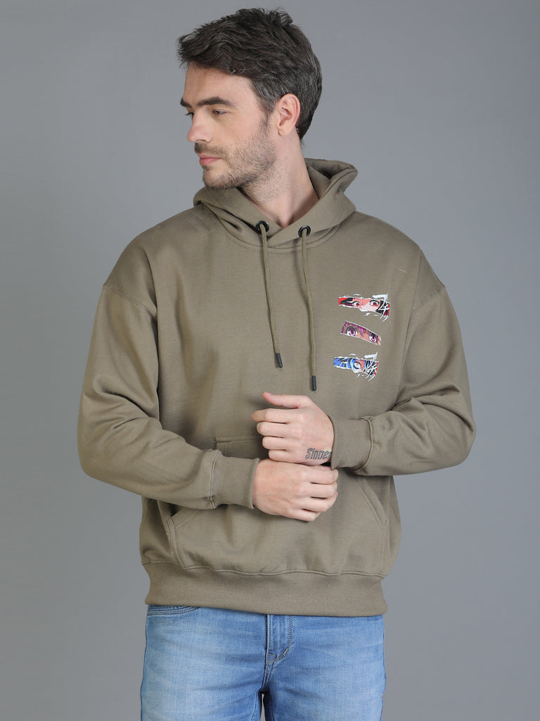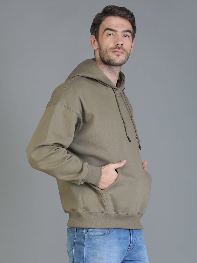 Colvyn Harris Printed Cotton Fleece Hoodie Beige Sweatshirt for Men