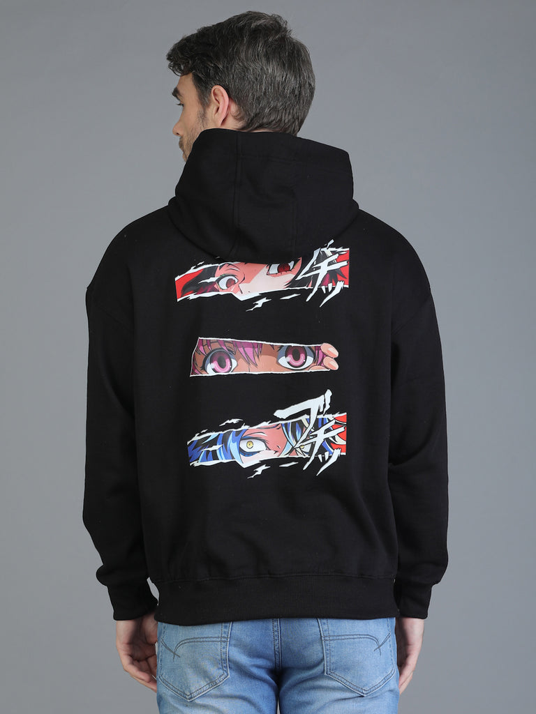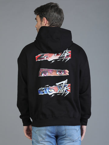 Colvyn Harris Printed Cotton Fleece Hoodie Black Sweatshirt for Men