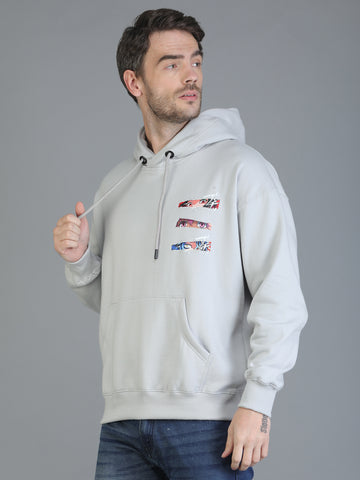 Colvyn Harris Printed Cotton Fleece Hoodie Cement Grey Sweatshirt for Men