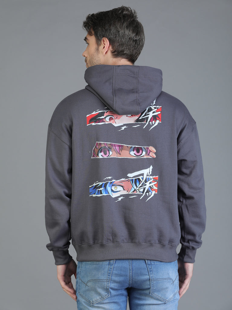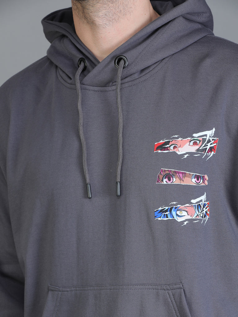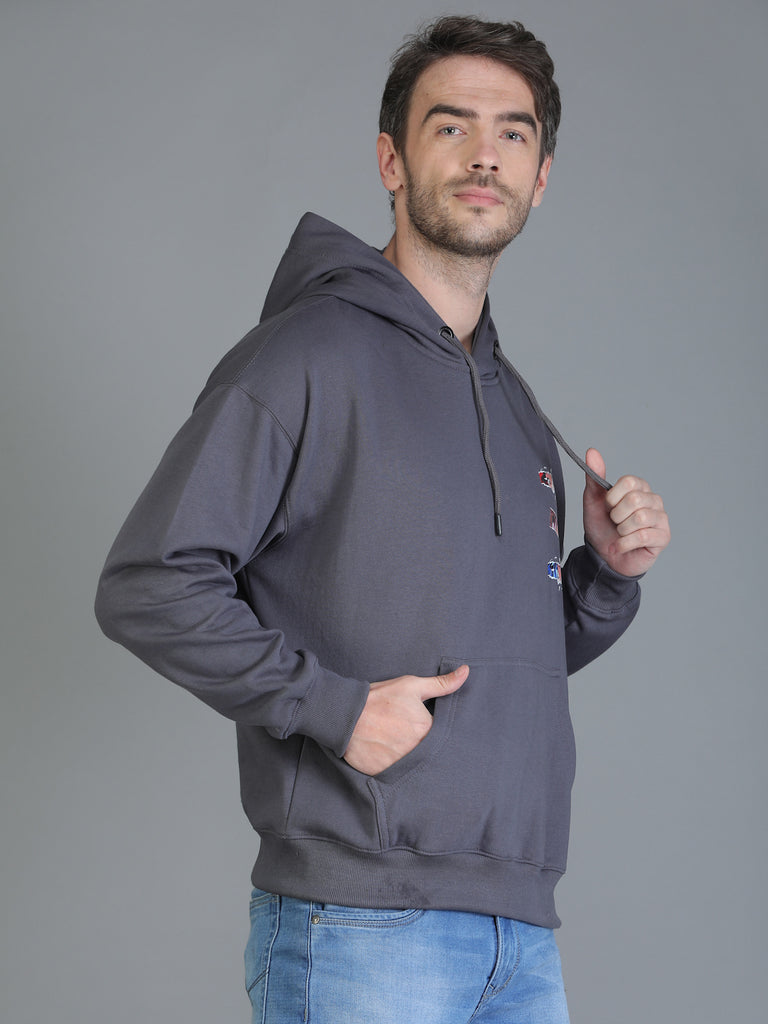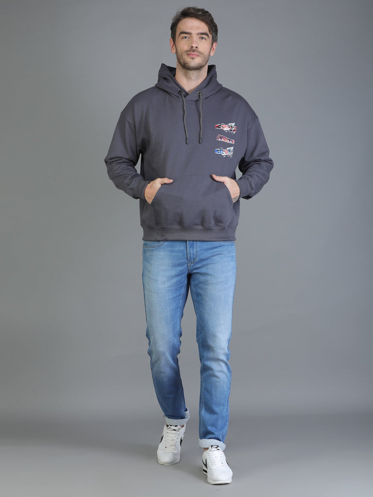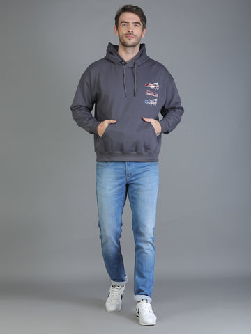Colvyn Harris Printed Cotton Fleece Hoodie Dark Grey Sweatshirt for Men