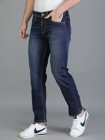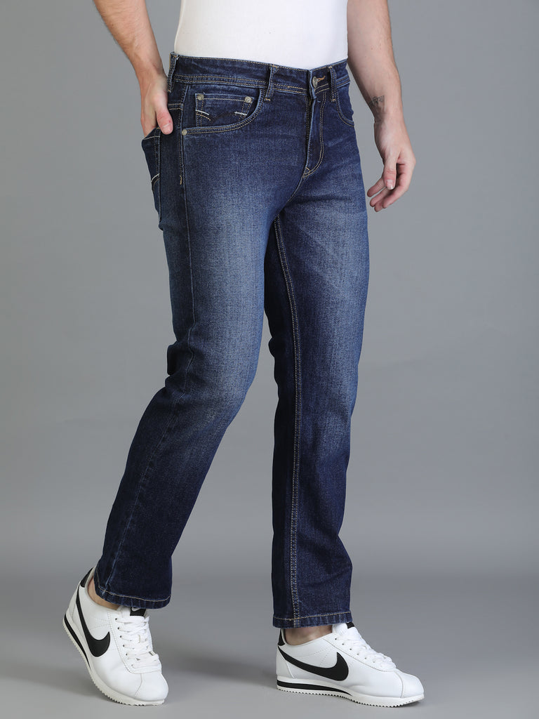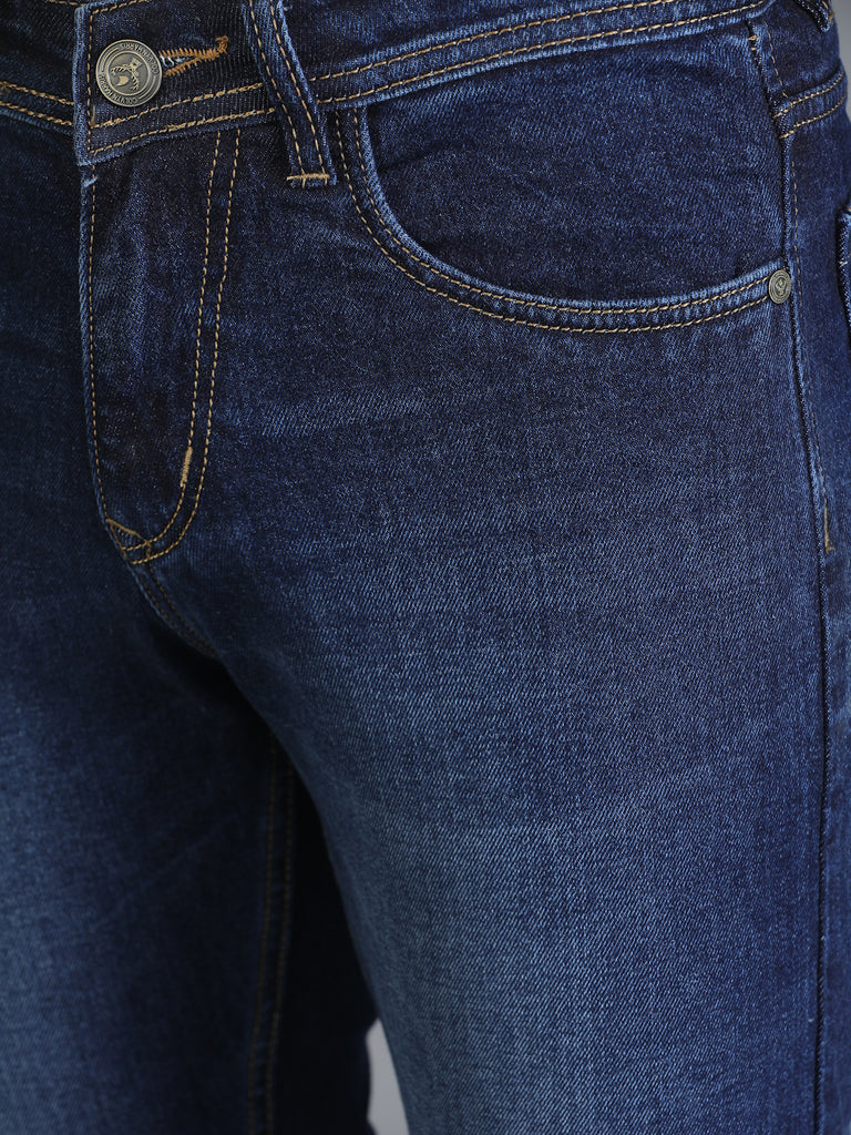 Colvyn Harris Regular Fit Solid Cotton Flat Bata Wash Dark Jeans for Men