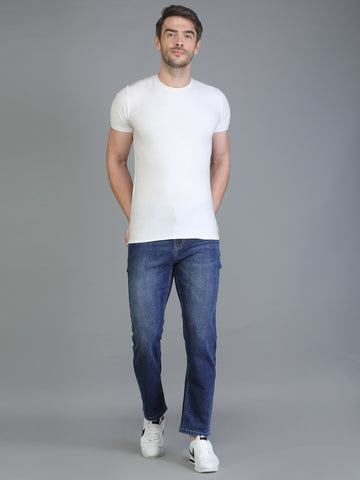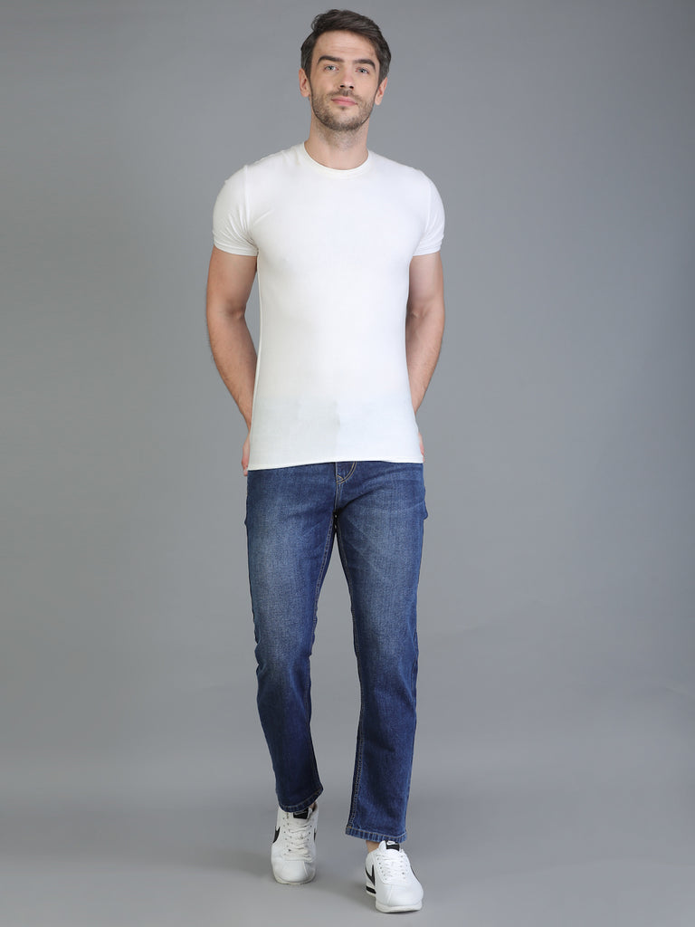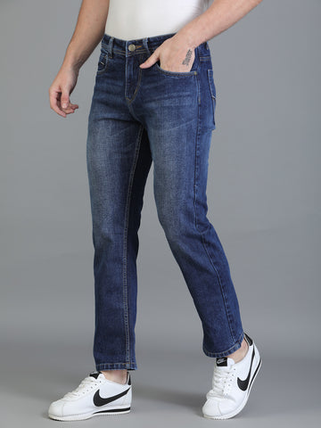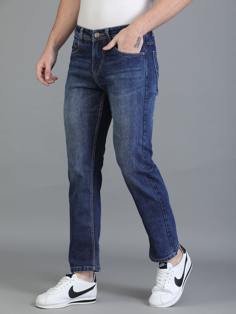 Colvyn Harris Regular Fit Solid Cotton Flat Hard Bata Wash Dark Jeans for Men