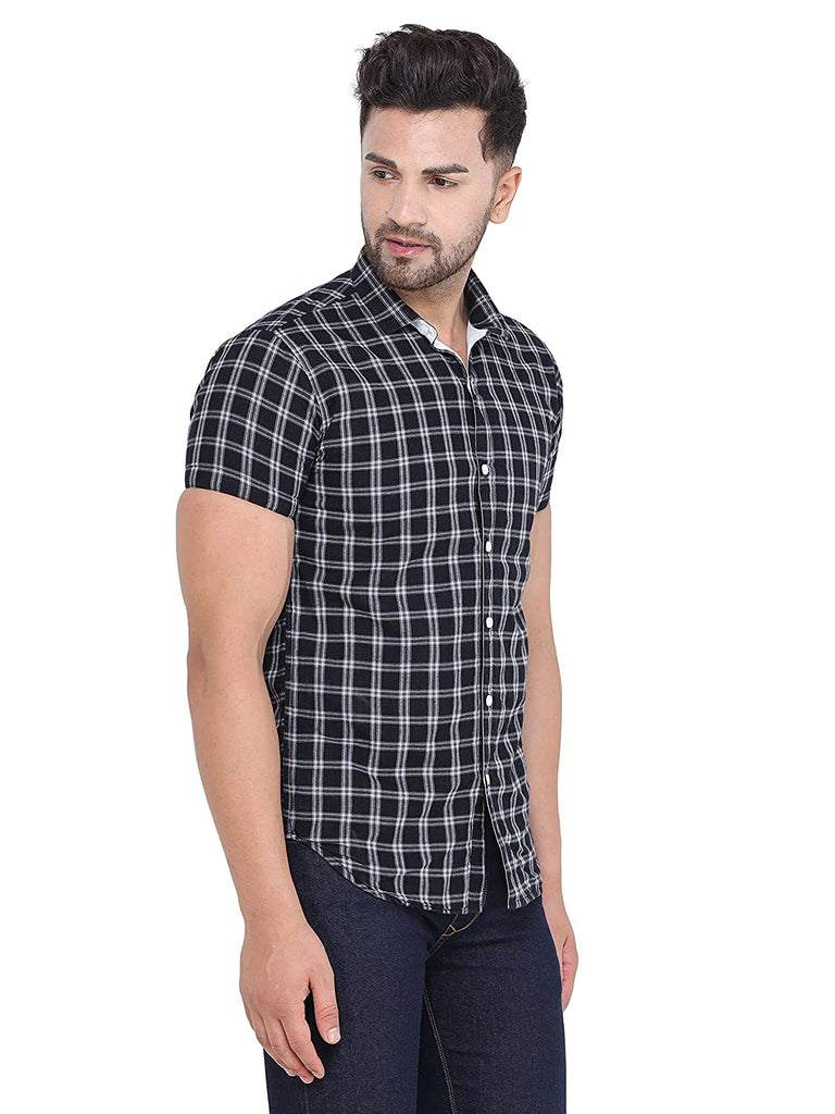 Colvyn Harris Slim Fit Black & White Check Shirt for Men with Pocket
