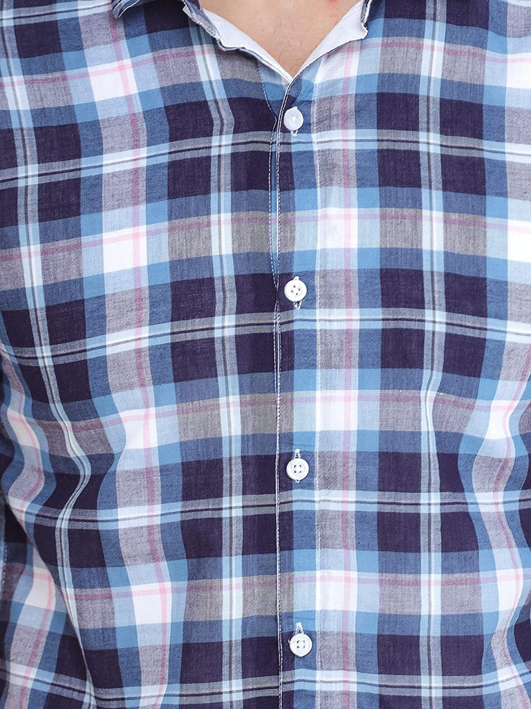 COLVYNHARRIS JEANS Men Dark Blue and Black Reversible Chekered Casual Shirt