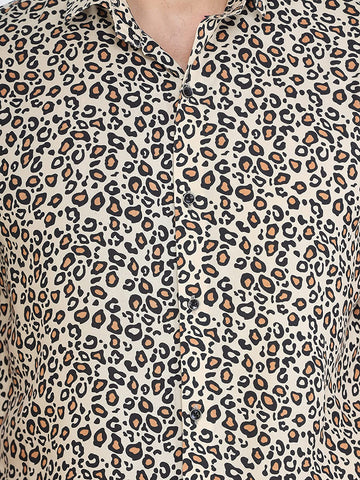 COLVYNHARRIS JEANS Men Light Brown Digital Printed Casual Shirt