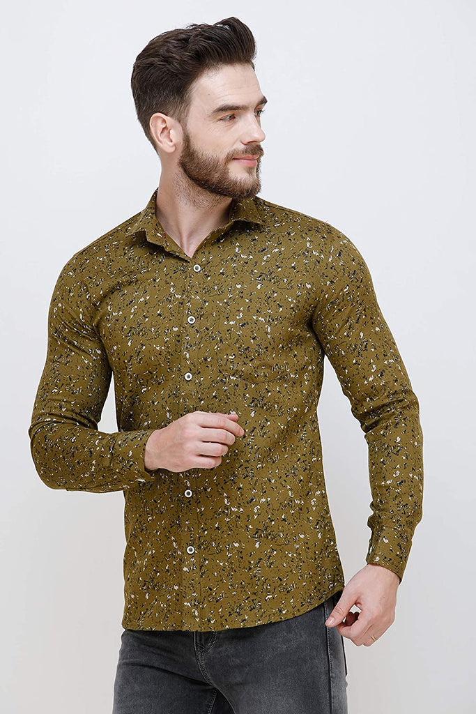 COLVYNHARRIS JEANS Men casualwear Full Sleeve Shirt Collar Luxury Olive Green Shirt