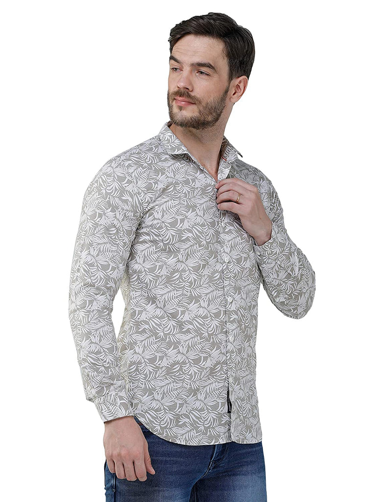 COLVYNHARRIS JEANS Men Casualwear Full Sleeve Slim Fit Beige Floral Print Shirt