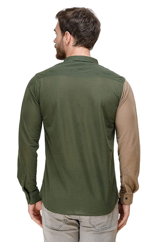 COLVYNHARRIS JEANS Men Casualwear Full Sleeve Slim Fit Shirt Collar Contrast Print Peanut Olive Luxury Shirt