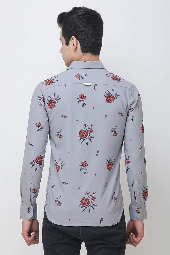 COLVYNHARRIS JEANS Men casualwear Full Sleeve Slim Fit Shirt Collar Floral Print Grey Luxury Shirt