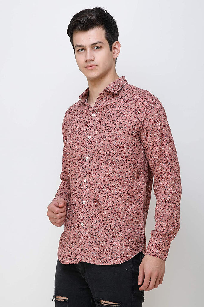 COLVYNHARRIS JEANS Men casualwear Full Sleeve Slim Fit Shirt Collar Floral Print Onion Pink Luxury Shirt