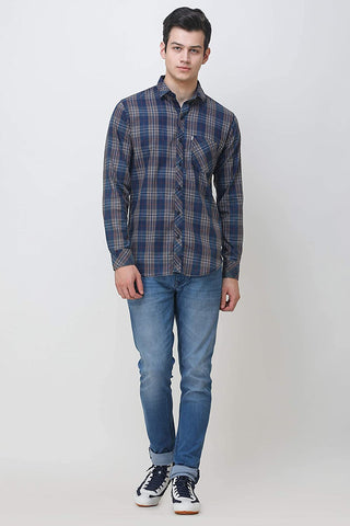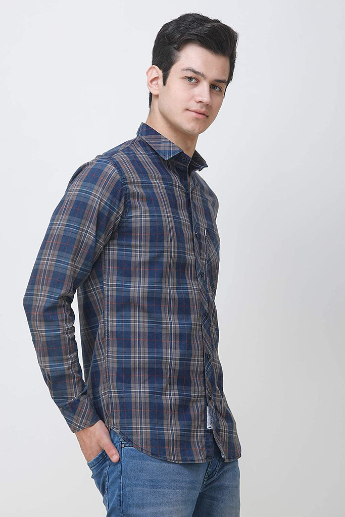 COLVYNHARRIS JEANS Men casualwear Full Sleeve Slim Fit Shirt Collar Grey Blue Luxury Check Shirt