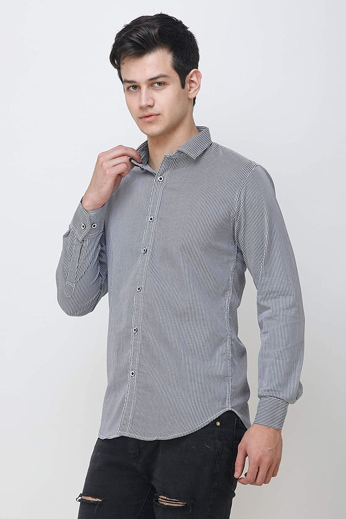 COLVYNHARRIS JEANS Men casualwear Full Sleeve Slim Fit Shirt Collar Luxury Grey Stripes Shirt