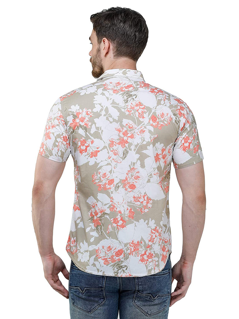 COLVYNHARRIS JEANS Men Casualwear Half Sleeve Slim Fit Beige Floral Print Shirt