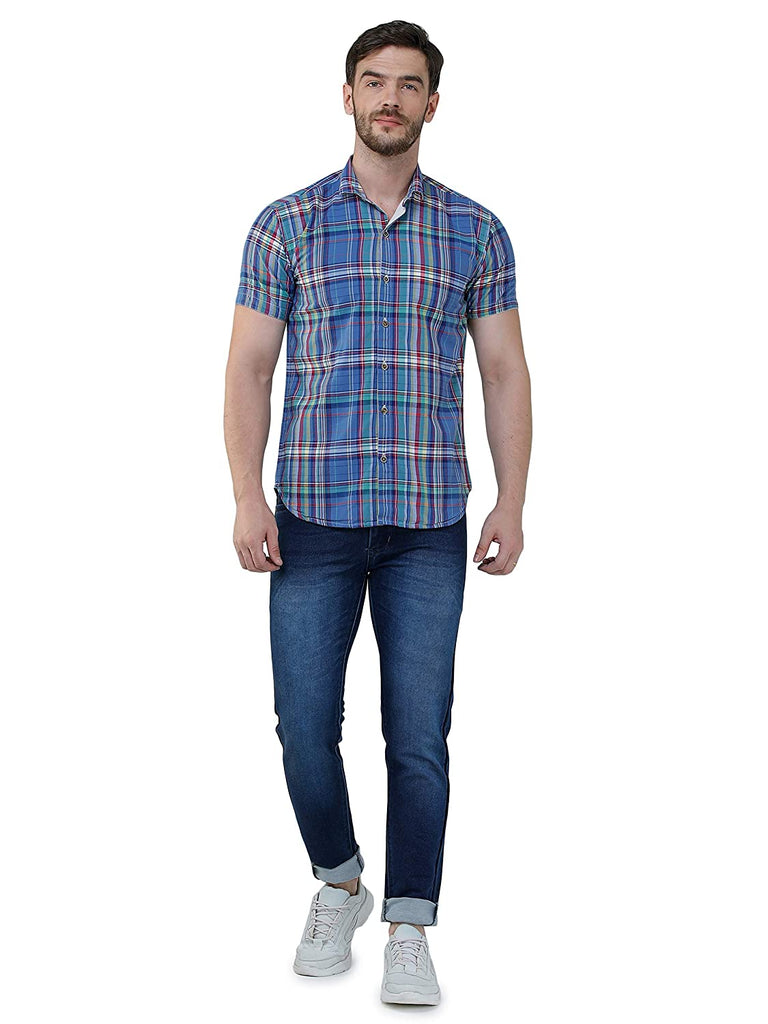 COLVYNHARRIS JEANS Men Casualwear Half Sleeve Slim Fit Blue Printed Shirt