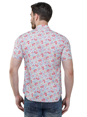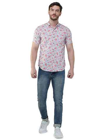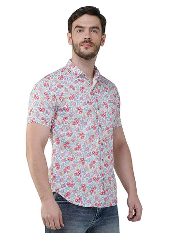 COLVYNHARRIS JEANS Men Casualwear Half Sleeve Slim Fit White Floral Print Shirt