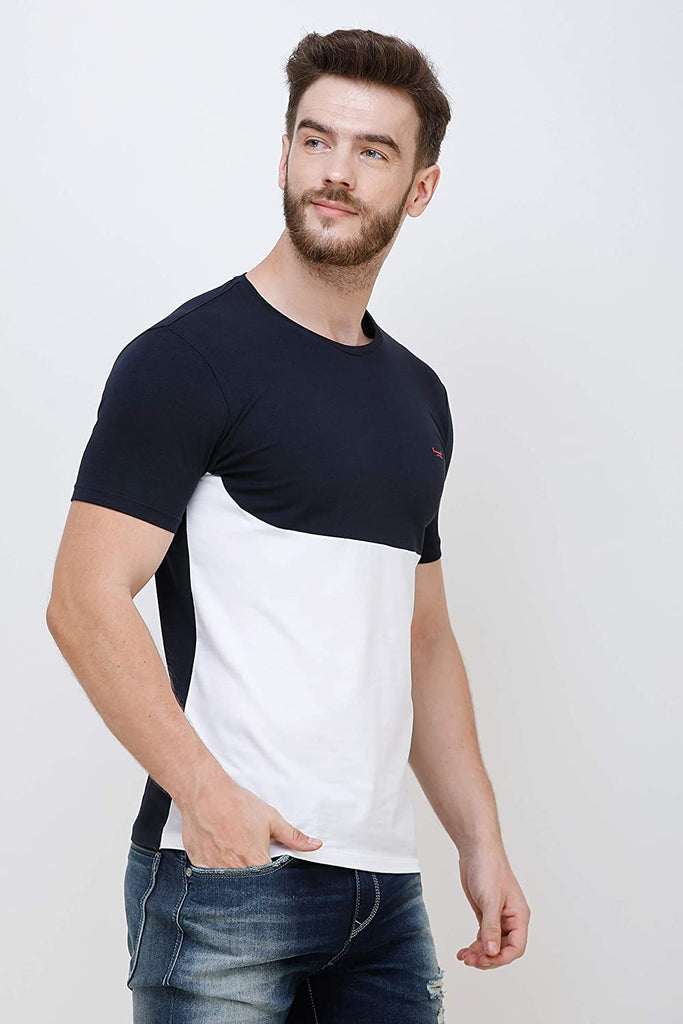 Care Instructions: Machine WashFit Type: Slim FitFabric: CottonStyle: RegularNeck Style: Round NeckPattern: ColorblockSleeve Type: Half Sleeve
