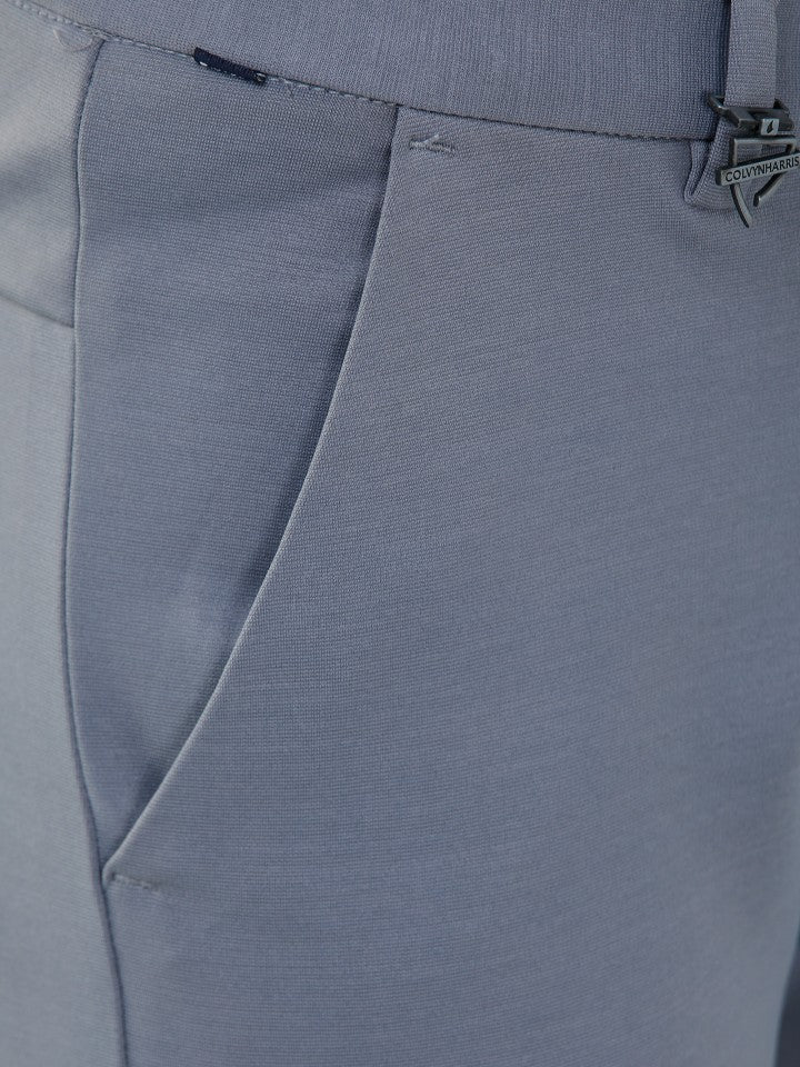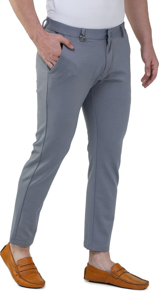 Item: TrouserFabric: Fourway LycraColor: GreyFit Type: Slim FitPattern: SolidOther details: Belt Loops, Button Closure & Zip Fly