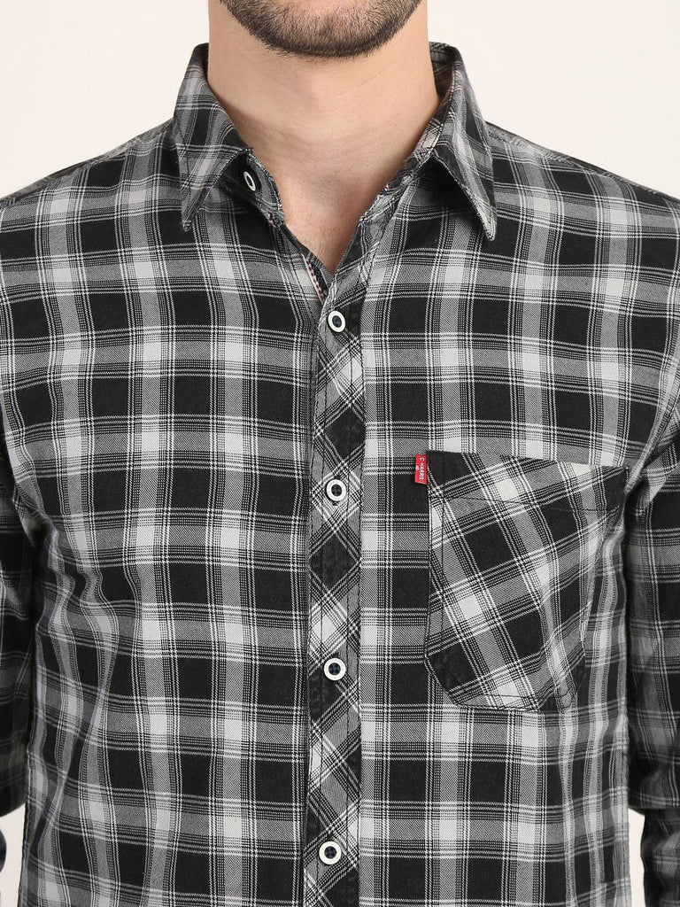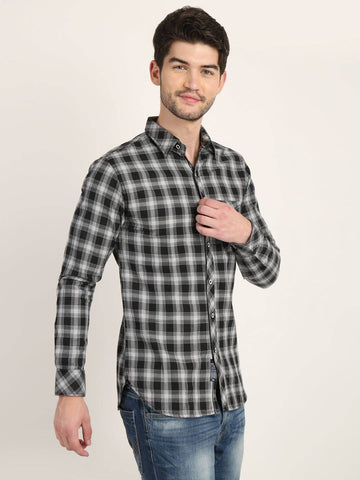 Fit Type: Slim FitPrint/Pattern: Tartan ChecksFabric: Cotton BlendClosure: ButtonCollar: Classic CollarSleeve Type: Full SleevePocket: 1 PocketHemline: CurvedSize Instructions: M-38", L-40", XL-42"