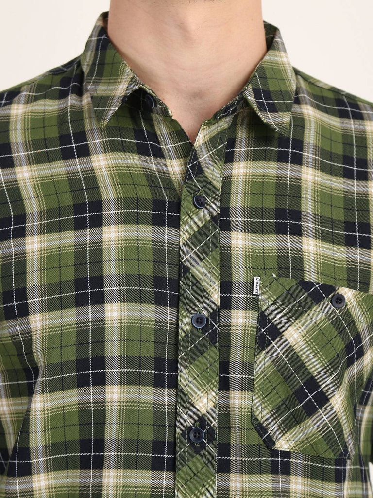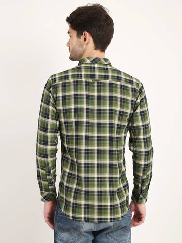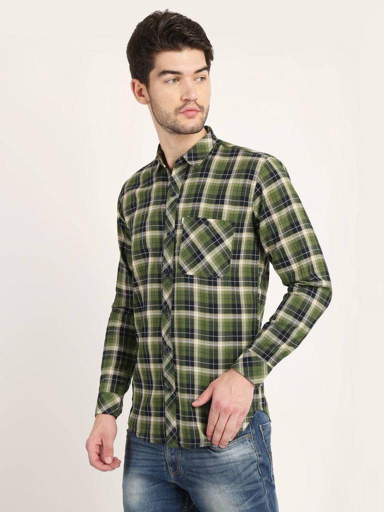 Fit Type: Slim FitPrint/Pattern: Tartan ChecksFabric: Twill ChecksClosure: ButtonCollar: Classic CollarSleeve Type: Full SleevePocket: 1 PocketHemline: CurvedSize Instructions: M-38", L-40", XL-42"
