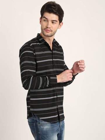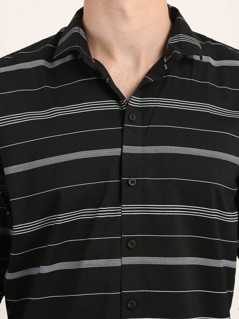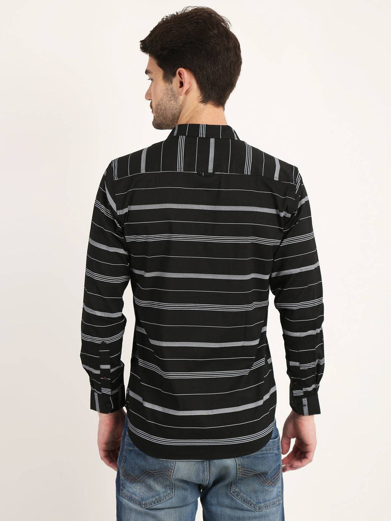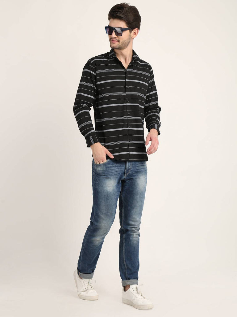 Fit Type: Slim FitPrint/Pattern: Horizontal StripesFabric: LycraClosure: ButtonCollar: Classic CollarSleeve Type: Full SleevePocket: Not AvailableHemline: CurvedSize Instructions: M-38", L-40", XL-42"