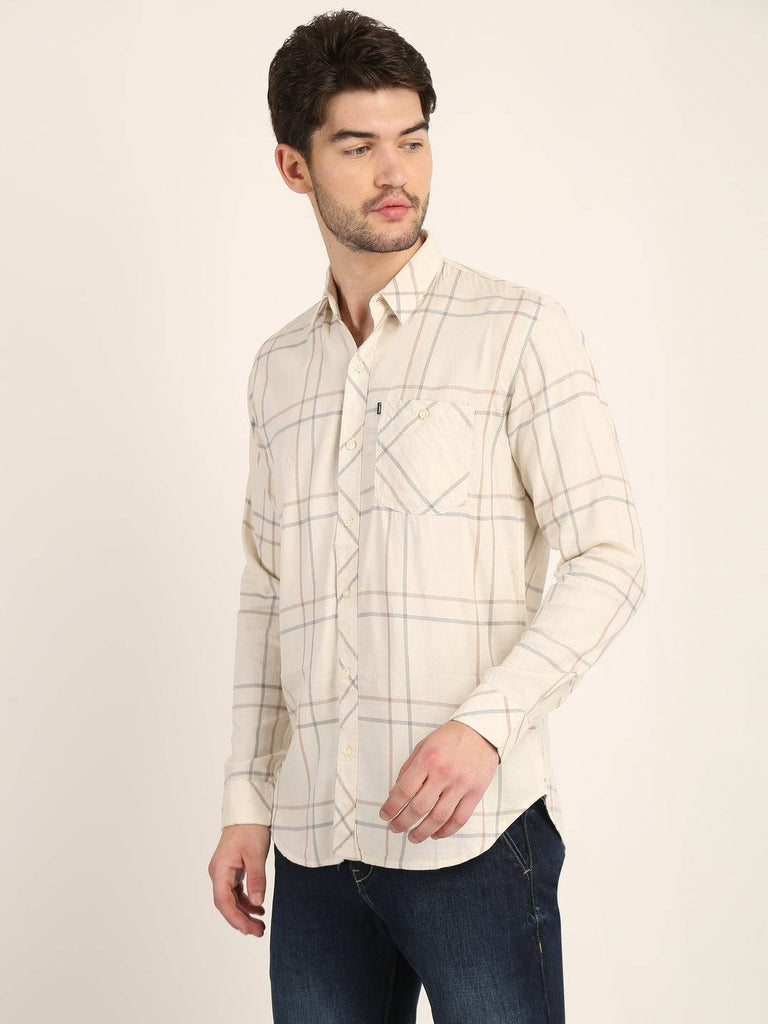 Fit Type: Slim FitPrint/Pattern: CheckeredFabric: Cotton TwillClosure: ButtonCollar: Classic CollarSleeve Type: Full SleevePocket: 1 PocketHemline: CurvedSize Instructions: M-38", L-40", XL-42"