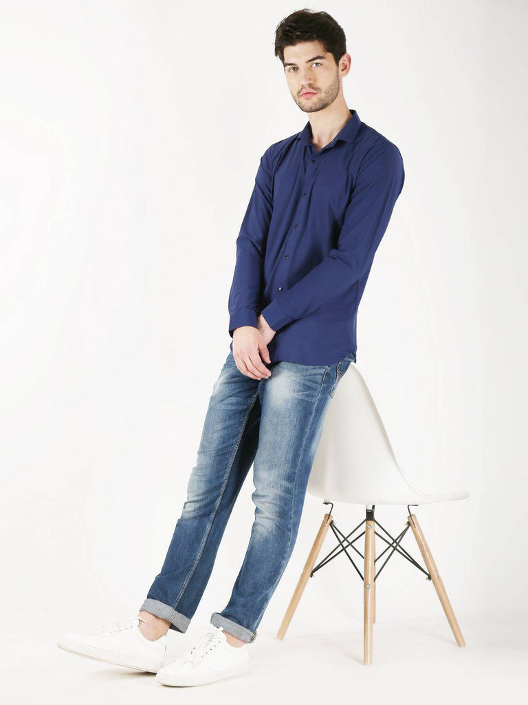 Fit Type: Slim FitFabric: Condom LycraClosure: Snap ButtonCollar: Classic CollarSleeve Type: Full SleevePocket: Not AvailableHemline: CurvedSize Instructions: M-38", L-40", XL-42"