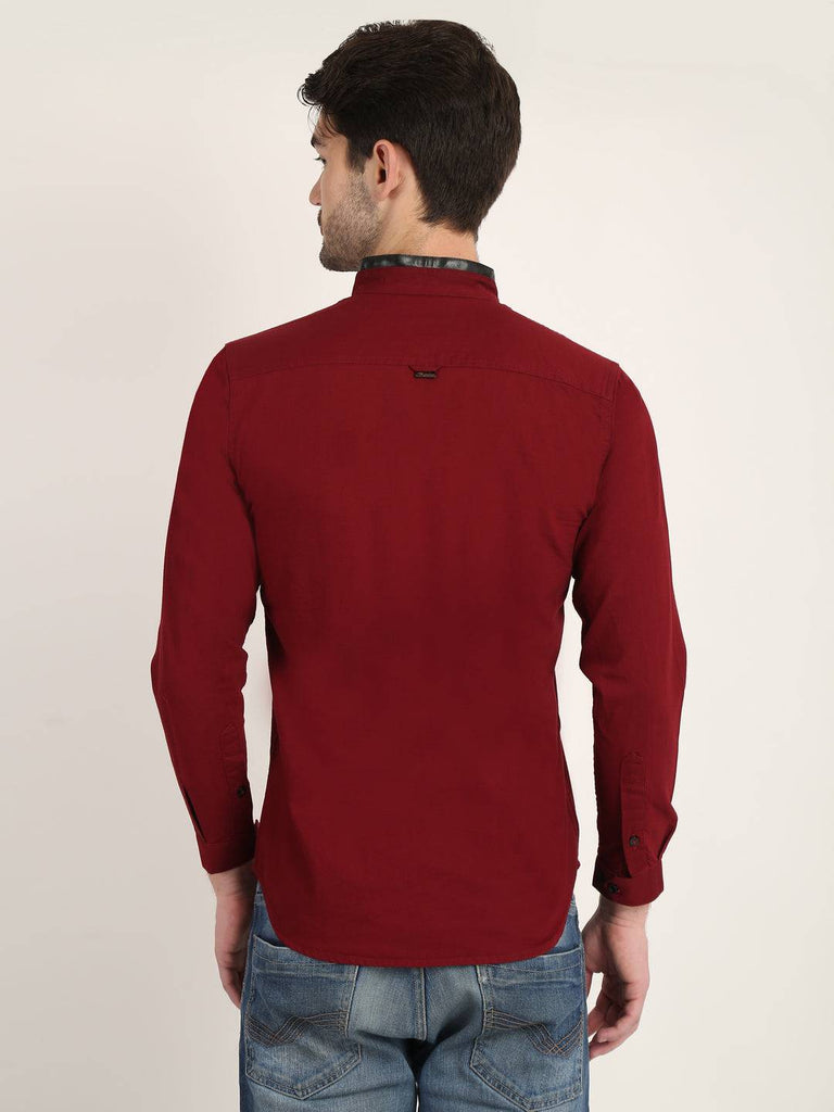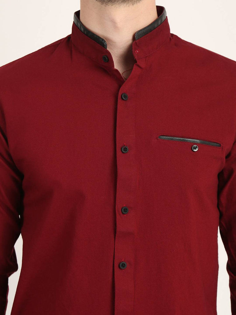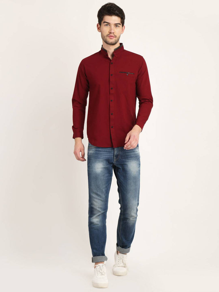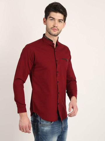 Fit Type: Slim FitFabric: Cotton LinenClosure: ButtonCollar: Chinese CollarSleeve Type: Full SleevePocket: False Pocket with Leather TouchHemline: CurvedSize Instructions: M-38", L-40", XL-42"