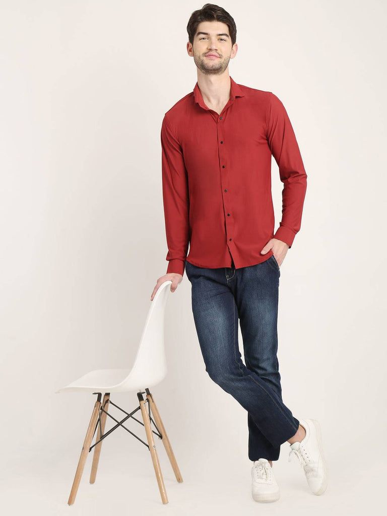 Fit Type: Slim FitFabric: Condom LycraClosure: Snap ButtonCollar: Classic CollarSleeve Type: Full SleevePocket: Not AvailableHemline: CurvedSize Instructions: M-38", L-40", XL-42"