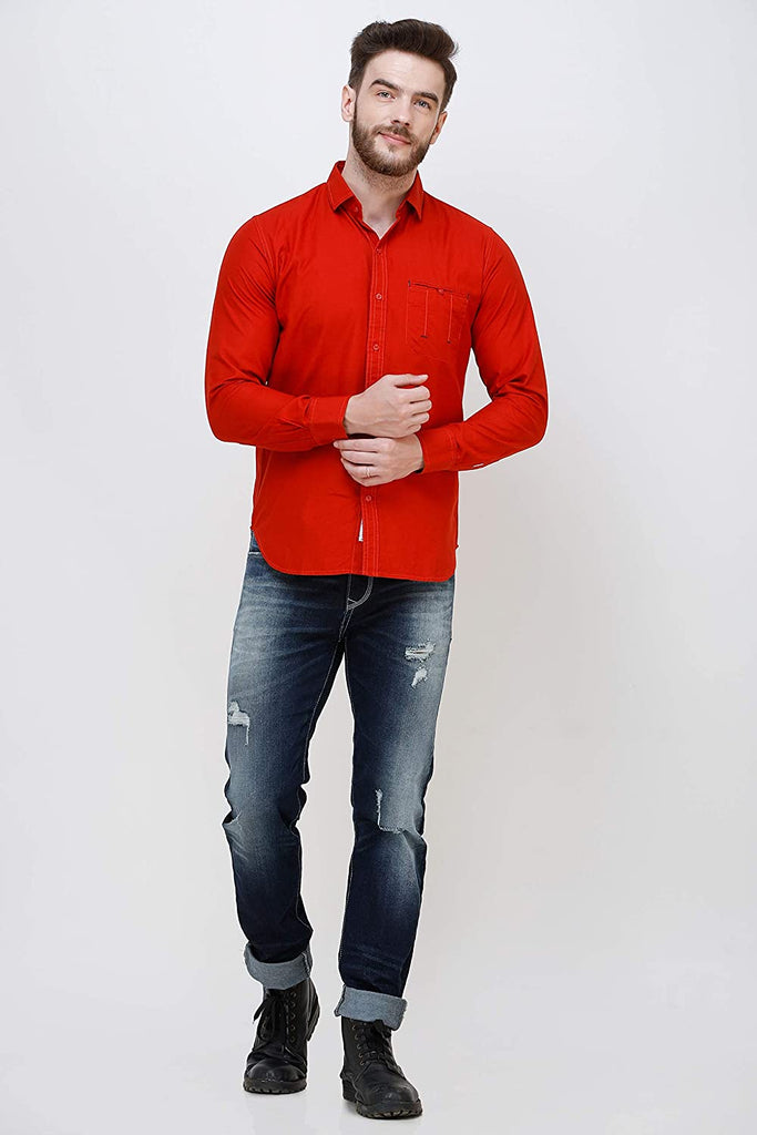 Men's Red Full Sleeve Slim Fit Casual Shirt
