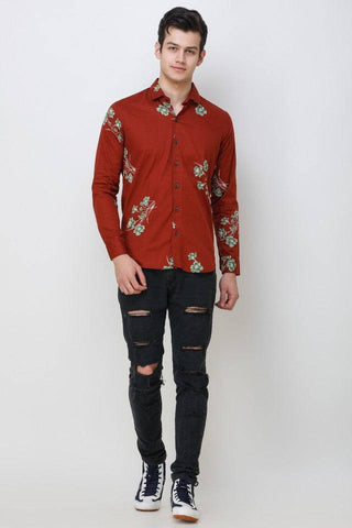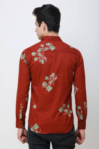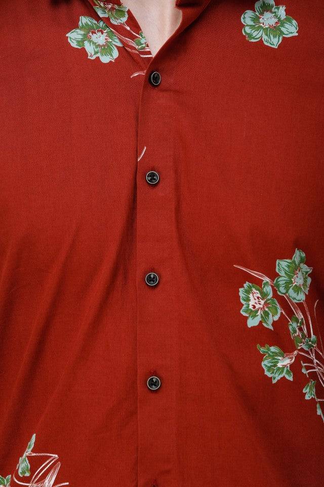Men's Maroon Floral Print Slim Fit Luxury Shirt