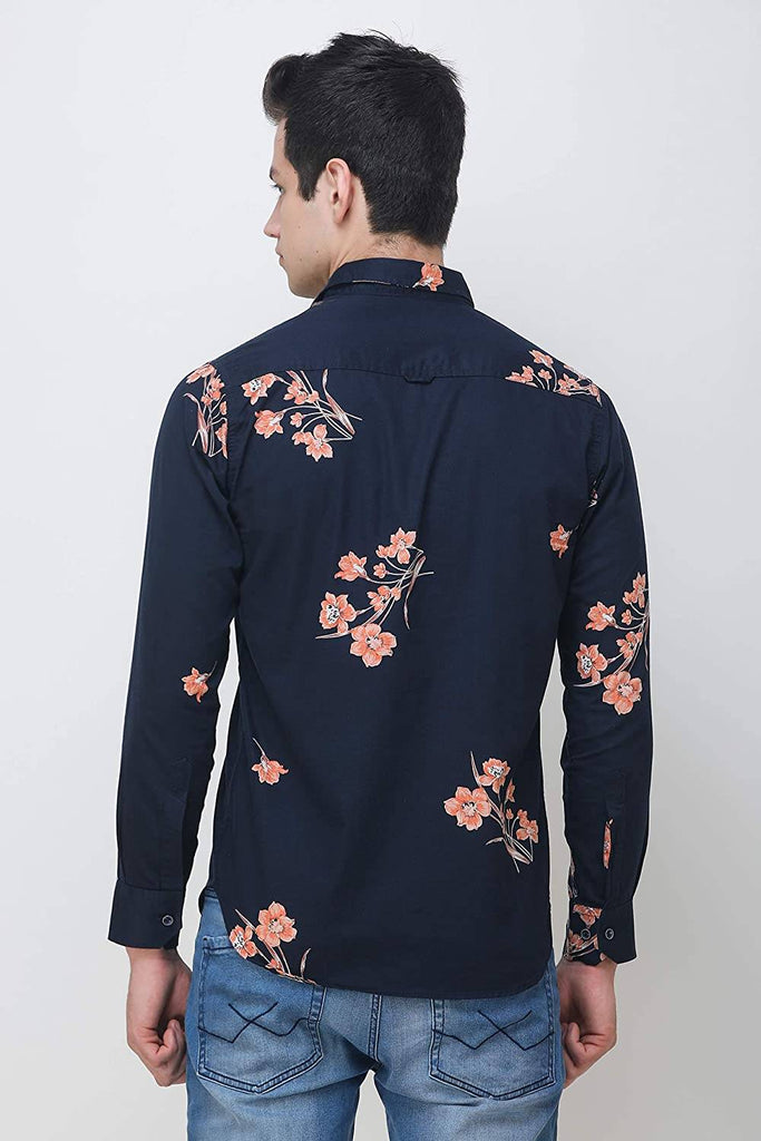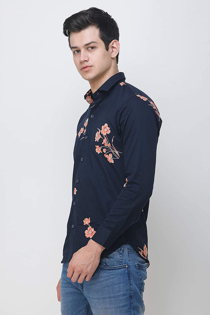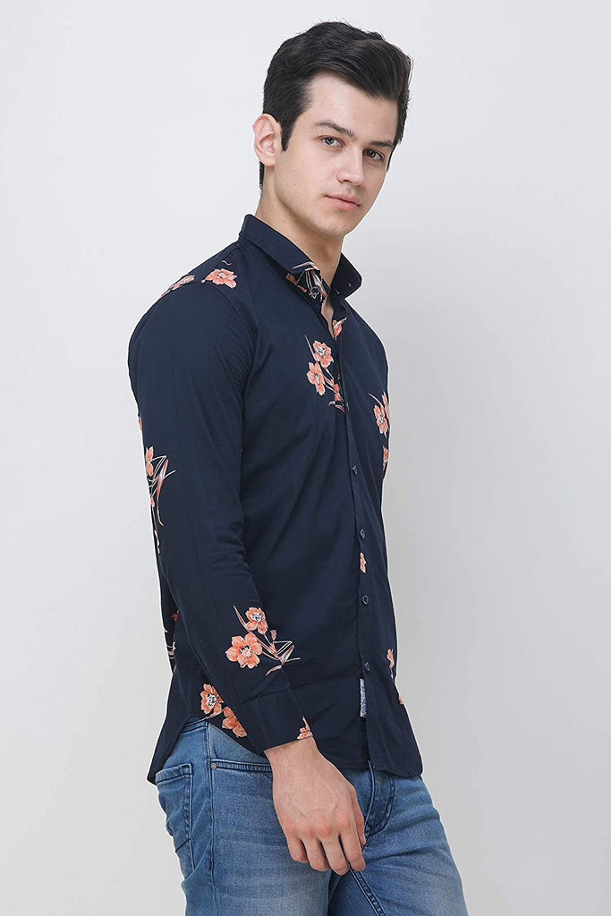 Men's Navy Blue Floral Print Slim Fit Luxury Shirt