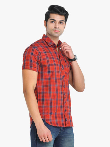 item: slim fit casual shirt fabric: twill cotton sleeve: short sleeves pattern: checkered hemline: curved closure: button button type: button
