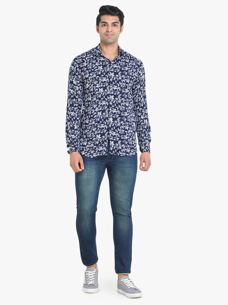 item: slim fit casual shirt style id: ch-cs1043-navy fabric: rayon cotton sleeve: full sleeves print/pattern: floral print hemline: curved closure: button