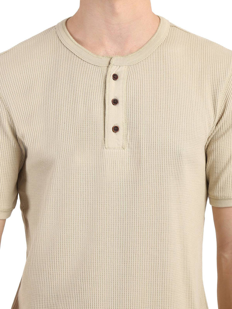 Fit Type: Regular FitPrint/Pattern: KnittedPrint Cover: All OverFabric: Waffle KnitClosure: ButtonNeck: Henley NeckSleeve Type: Short SleevesPocket: NAHemline: StraightSize Instructions: M-38", L-40", XL-42", XXL-44"