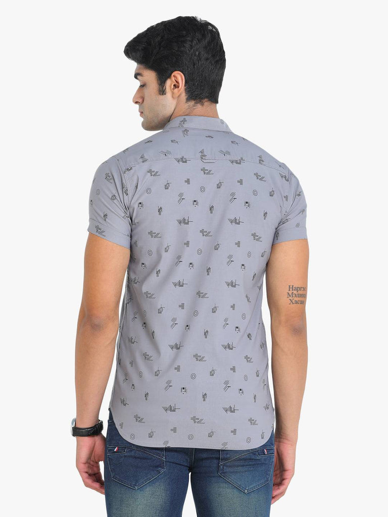 Item: Slim Fit Casual Shirt Fabric: Power Lycra Sleeve: Short Sleeves Pattern: Printed Print: Geometric Hemline: Curved Closure: Button Button Type: Tich Button