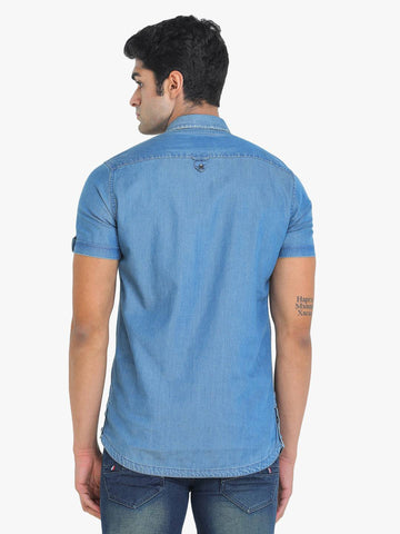 Style Id: Ch-Cs974-Bluetint Fabric: Denim Cotton Sleeve: Short Sleeves Pattern: Solid Pocket: 1 Flap Pocket Hemline: Curved Closure: Button